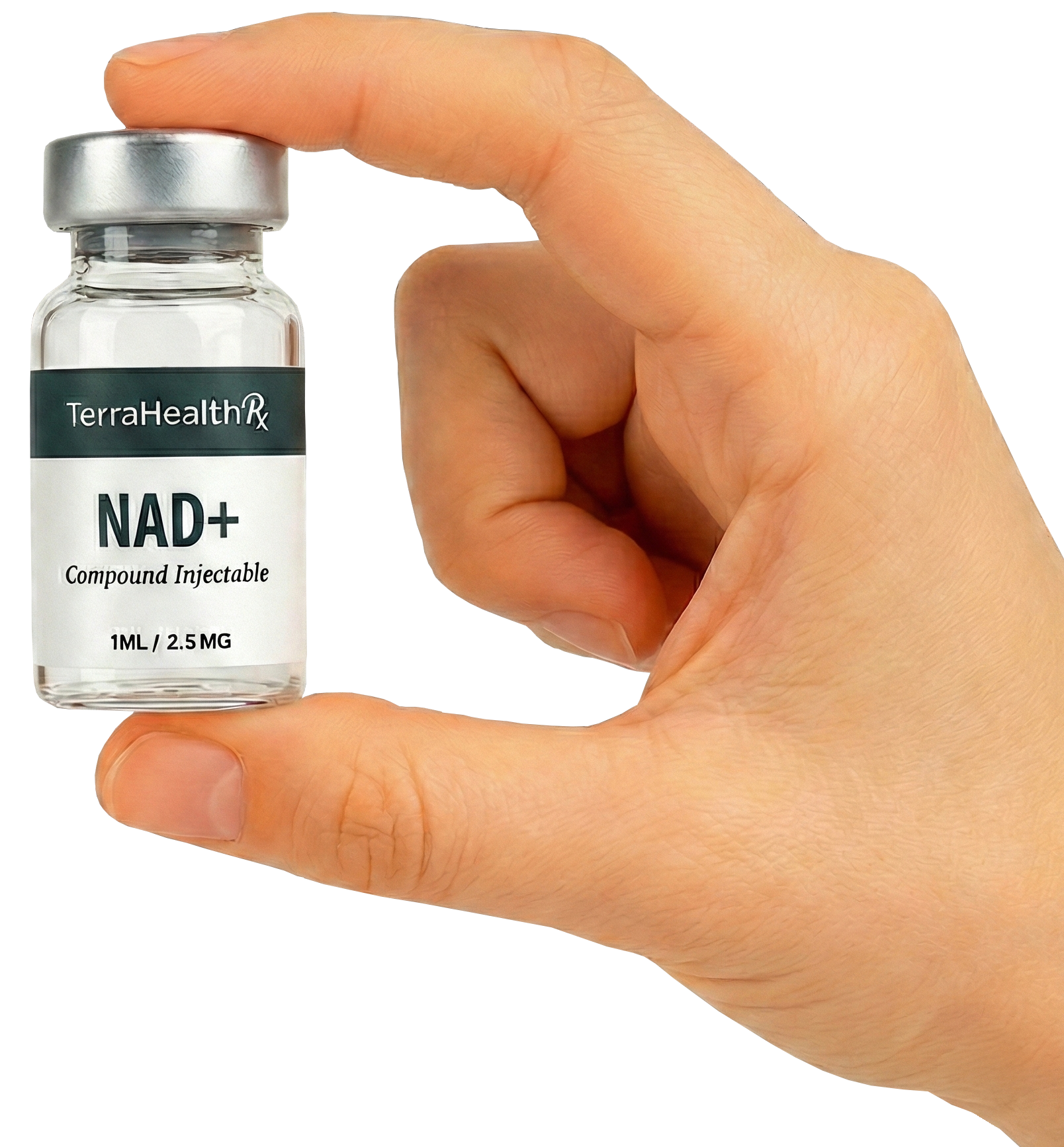 Our pharmacy-compounded NAD+ is highly concentrated (typically 200mg/ml) to ensure maximum absorption. A standard vial provides multiple doses, and your provider will help you find the exact volume that works best for your energy levels.